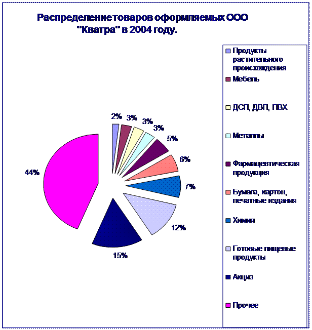 Перечень товаров оформляемых компанией ООО «Кватра» в 2004г. можно представить в виде диаграммы 2. Диаграмма 2.