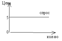 выше 5 руб. не может быть реализована ни одна единица, но когда цена падает до 5 руб, нет предела тому, как много товара может быть продано. Спрос совершенно эластичен.