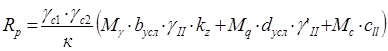 CII - расчетное значение удельного сцепления грунта, залегающего непосредственно под подошвой фундамента; d1 - глубина заложения фундаментов бесподвальных (помещений) зданий от уровня планировки или приведенная глубина заложения наружных и внутренних фундаментов от пола подвала, определяемая по формуле (если нет подвала, то d1 = d):