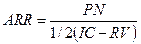 Дисконтированные оценки срока окупаемости всегда больше простых оценок, т.е. ДСОИ(DPP) >СОИ(PP). Недостатки метода ДСОИ(DPP): не учитывает влияние денежных притоков последних лет; не делает различия между накопленными денежными потоками и их распределением по годам; не обладает свойством аддитивности. Преимущества данного метода: прост для расчетов; способствует расчетам ликвидности предприятия, т.е. окупаемости инвестиций; показывает степень рискованности того или иного инвестиционного проекта, чем меньше срок окупаемости тем меньше риск и наоборот. Коэффициент эффективности инвестиций ( ARR). Этот метод имеет две характерные черты: он не предполагает дисконтирования показателей дохода; доход характеризуется показателем чистой прибыли PN (балансовая прибыль за вычетом отчислений в бюджет). Алгоритм расчета исключительно прост, что и предопределяет широкое использование этого показателя на практике: коэффициент эффективности инвестиции (ARR) рассчитывается делением среднегодовой прибыли PN на среднюю величину инвестиции (коэффициент берется в процентах). Средняя величина инвестиции находится делением исходной суммы капитальных вложений на два, если предполагается, что по истечении срока реализации анализируемого проекта все капитальные затраты будут списаны; если допускается наличие остаточной стоимости (RV), то ее оценка должна быть исключена.