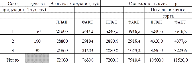 ИТОГО: 0 Таблица 15. Результаты фактического анализа товарной продукции