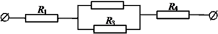 Чему равно общее сопротивление участка цепи, изображенного на рисунке, если R 1 = 1 Ом, R 2 = 10 Ом, R 3 = 10 Ом, R 4 = 5 Ом? R 2