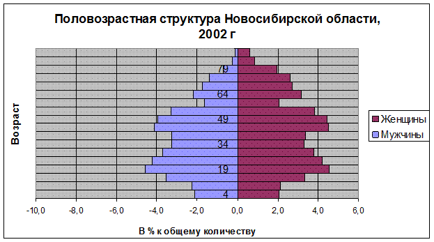 Реферат: Сравнение половозрастной структуры населения России и Новосибирской области