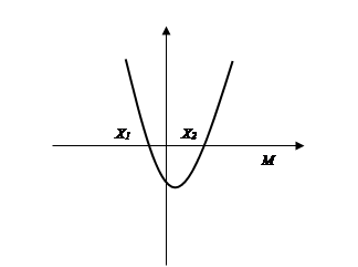 -При каких значениях параметра а заданное число М лежит между корнями квадратного уравнения? (х1 <M<x2 ). Возможны два случая: А > 0 и A < 0.