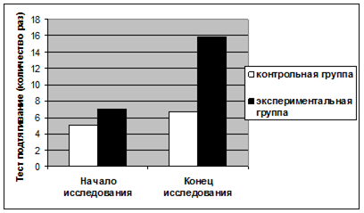 Рисунок 1 Оценка показателей этапного контроля – тест подтягивание На рисунке 1 мы видим, что в контрольной группе показатели изменились вследствие нормального прироста, так как школьники не занимались никакими видами спорта. Показатели в экспериментальной группе увеличились в 2 раза. Это говорит о рациональном построении тренировочных занятий, мотивации спортсменов и правильном контроле.