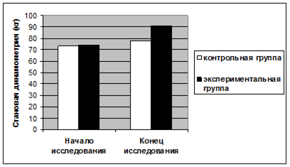 На рисунке 2 мы видим, что в начале исследования показатели в экспериментальной группе ниже, так как спортсмены выполняли тест в процессе тренировки. В середине исследования самбисты начали приобретать спортивную форму, и показатели в экспериментальной группе несколько превысили, чем в контрольной. В конце исследования мы видим достоверное отличие между группами, что свидетельствует о положительном влиянии физической нагрузки при правильно спланированном контроле. Выводы В нашей исследовательской работе мы поставили цель, которая достигалась поставленными задачами. В процессе исследования мы достигли нашей цели и теперь можно сделать следующие выводы: 1. Одним из наиболее существенных резервов повышения эффективности современной методики тренировки, безусловно, является улучшения качества проведения комплексного контроля. 2. В процессе подготовки спортсменов к соревнованиям был осуществлен оперативный, текущий и этапный контроль, что позволило вести постоянное наблюдение за тренировочным процессом и оценить динамику физического развития детей под влиянием физических нагрузок. 2. Наиболее информативными и приемлемыми средствами и методами комплексного контроля детей 11 – 12 лет являются следующие показатели: частота сердечных сокращений, артериальное давление, показатели динамометрии, показатели в тесте - прыжок в длину с места, в тесте на подтягивание в висе на перекладине и в тесте удержание ног в положении угла 90о в висе на перекладине. 3. Занятия борьбой самбо оказывает позитивное влияние на динамику развития основных физических качеств детей 11-12 лет. При этом наиболее выраженные изменения обнаруживаются в параметрах, характеризующих скоростно-силовые возможности организма, менее выраженные — в показателях общей и силовой выносливости. 4. Занятия борьбой самбо в возрасте 10-12 лет вызывают некоторое ускорение физического развития, достоверно повышают силовые возможности организма, не стимулируя при этом прироста массы тела, и в определенной степени способствуют экономизации функции сердца. 5. Возрастной период 11-12 лет оптимален для организации целенаправленной начальной спортивной подготовки. Такая подготовка позволяет в полной мере использовать растущие физические и функциональные возможности организма школьников при освоении сложных в координационном отношении двигательных действий самбиста и в процессе совершенствования физических качеств. 6. В ходе исследования мы сравнили полученные результаты в контрольной и экспериментальной группах и выяснили, что занятия спортом, в частности борьбой, положительно влияют на динамику прироста физических качеств функциональных возможностей организма в целом. Список используемой литературы 1 А.Г. Дембо Врачебный контроль в спорте,Москва,«Медицина»,1988г. 2. Т. Ю. Курцевич Общие основы теории и методики физического воспитания, том 1, Киев, «Олимпийская литература», 2003 г. 3. С. Ф. Матвеев, О. К. Наухатько Самбо: Учебная программа для детско-юношеских спортивных школ, специализированных детско-юношеских школ олимпийского резерва, школ высшего спортивного мастерства, Киев,2001 г. 4. Л. В. Волков Обучение и воспитание юного спортсмена. Киев «Здоровье», 1984 г. 5. Л. П. Матвеев Основы общей теории и системы подготовки спортсменов. Киев «Здоровье», 1977 г. 6. С. Ф. Борьба самбо. Ки