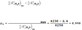 С учетом содержания остаточного сероводорода в поступающем в аппарат абсорбенте количество