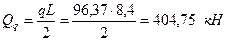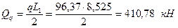 Значения поперечных сил на опорах определяются методами строительной механики (рис. 2.2,в): QA = Qq + QM , QB = Qq – QM , где: Qq – поперечная сила от действия равномерно распределённой нагрузки: