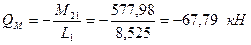 QM – поперечное усилие от действия опорных изгибающих моментов:
