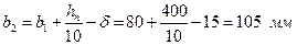 где ω – характеристика сжатой зоны бетона, определяемая по формуле (26) СНиП [2]: ω = a – 0,008 Rb gb 2 = 0,85 – 0,008 × 22 × 0,9 = 0,6916; a – коэффициент, учитывающий вид бетона; для тяжелого бетона a = 0,85; Rb здесь следует брать в МПа . σsR – напряжение в арматуре, определяемое по формуле: σ sR = Rs + 400 – σsp gsp = 815 + 400 – 800×0,9 = 495 МПа ; здесь используется значение gsp = 0,9. σs c, u – предельное напряжение в арматуре сжатой зоны, принимаемое при g b 2 < 1,0 равным σs c, u = 500 МПа . Тогда 3.4. Опалубочные размеры панели Опалубочные размеры необходимы для изготовления опалубочных форм сборных железобетонных элементов. Обычно предусматривается применение типовых опалубочных форм. Чертежи железобетонных элементов, на которых показаны только наружные размеры, называются опалубочными . 3.4.1. Основные габаритные размеры панели а) номинальные – в осях. Эти размеры установлены в процессе компоновки конструктивной схемы каркаса здания: 4 длина ln = 8400 мм 4 ширина bn = 1400 мм 4 высота hn = 400 мм . б) конструктивные – с учётом зазоров, которые необходимы: 1) для возможности свободной укладки сборных элементов при монтаже (зазор не менее 10 мм ); 2) для возможности замоноличивания швов между элементами (зазор не менее 30 мм при высоте элементов более 250 мм , п. 5.51 СНиП [2]). Устраиваем зазоры (рис. 3.1): Δ = 30 мм , Δ1 = 10 мм , тогда конструктивные размеры панели будут такими: · длина l k = ln – Δ = 8 400 – 30 = 8 370 мм , · ширина bk = bn – Δ1 =1 400 – 10 = 1 390 мм . Принимаем величину уступа в поперечном сечении ребристой панели δ = 15 мм , тогда зазор Δ2 : Δ2 = Δ1 + 2δ = 10 + 2 · 15 = 40 мм > 30 мм , требования СНиП выполнены. 3.4.2. Ширина продольного ребра панели 4 внизу (b 1 ) принимается из условия обеспечения требуемой толщины защитного слоя бетона b 1 ≥ 70…80 мм , принимаем b 1 = 80 мм . 4 вверху (b 2 ) принимается из условия обеспечения уклона граней ребра, равного 1/10: