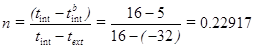 где tint – 16o C – расчетная температура воздуха внутри здания text –32о С – расчетная температура наружного воздуха tbint = +5o C – расчетная температура в подвале Rоb.c = 0,22917 * 3,38985 = 0,777