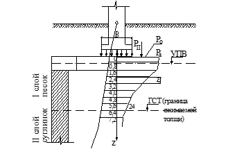 Рисунок 4 – Расчетная схема для определения осадки основания фундамента Таблица 4 – Ординаты эпюры напряжений