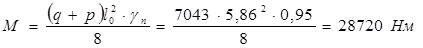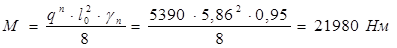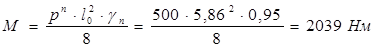 6) Определение расчетного пролета панели: Расчетный пролет панели l0 – принимаем равным расстоянию между осями ее опор. l0 = 5980–120 = 5860 (мм). Расчетный изгибающий момент от полной нагрузки: