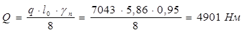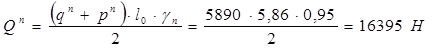 Максимальная поперечная сила на опоре от нормативной нагрузки: