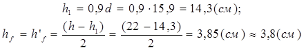 где h'0=Н-а'S=22–1,5=20,5 (см), считая менее сжатой ту зону сечения, которая более удалена от напряженной арматуры АSР·ξ =0,26πξR=0,634; η=0,87; в расчете учитываем ξ=0,26. Требуемая площадь сечения арматуры А' S равна: