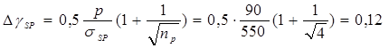 Согласно «Руководству по технологии изготовления предварительно напряженных железобетонных конструкций», значение σSP принимается для термически упрочненных сталей не более 550 МПа. Принимаем σSP=550 (МПа). Проверяем выполнение условий: σSP+р≤ RSn; σSP-р≥0,3 RSn 550+90=640≤785 (МПа); 550–90=460≥0,3.785=236 (МПа) Вычисляем предельное отклонение предварительного напряжения при числе напрягаемых стержней np = 4: