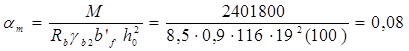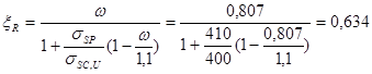 где ω – характеристика сжатой зоны бетона: ω=0,85–0,008·Rb=0,85–0,008·0,9·8,5 =0,78 σSC, U – предельное напряжение в арматуре сжатой зоны; σSC, U =500 (МПа), σSR – напряжение в арматуре: σSR = RS + 400 – σSP – ΔσSP = 680 + 400 – 485 = 595 (МПа); ΔσSP = 0 (при электротермическом способе натяжения)