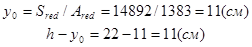Расстояние от ядровой точки, наиболее удаленной от растянутой зоны (верхней) до центра тяжести приведенного сечения:
