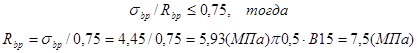 Значение передаточной прочности бетона к моменту его обжатия принимаем Rbp=11 (МПа). Тогда отношение σbp/Rbp=4.45/11=0.4. Вычисляем сжимающее напряжение в бетоне на уровне центра тяжести напрягаемой арматуры от усилия обжатия Р1 (без учета момента от собственного веса панели перекрытия):