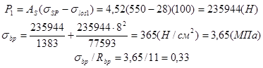 при σbp/Rbp = 3,73/11=0,34πα=0,25+0,025·Rbp =0,25+0,025·7,5=0,44 (что<0,8). Потери от быстро натекающей ползучести будут:
