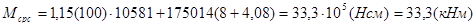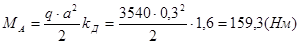 Изгибающий момент в сечении от собственного веса без учета kd=1,6