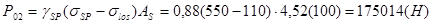 где Мгр – ядровой момент усилий обжатия, равный Р02 (е0 р+r) при γSP=0,88. Усилие предварительного обжатия с учетом всех потерь: при γSP=0,88.