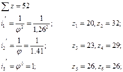 5.5 Определение чисел зубьев шестерен Числа зубьев находим табличным методом. Сущность этого метода заключается в том, что по таблице подбирается такая сумма чисел зубьев сопряженных колес одной группы, которая содержит числа зубьев шестерен для всех передаточных отношений сопряженных пар данной группы.
