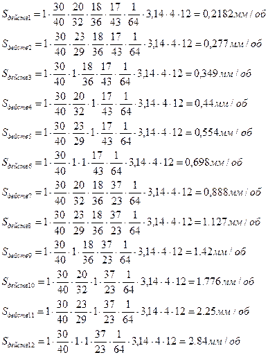 По построенному графику чисел подач и определенному числу зубьев колес передачи определяем действительные числа подач