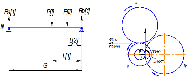 Исходные данные для расчета N = 4 Mкр = 86,89 - крутящий момент на расчетном валу G = 29,5 Расстояние между опорами СИГМ =550 кг/см2 допускаемое напряжение материала D =4;4.2;107 ;107 см. – диаметры колес (делительные) ФИ =1;9;0;0 - углы действия сил (радиан) ПСИ =3.49;4;71;0;0; - углы действия сил L =27.8;9.8;0;0; см. – расстояние до сил