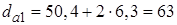 Для шлифованного червяка при m = 6,3мм < 10 мм увеличиваем b1 на 25 мм. b1 = 90 ммм. Диаметр вершин колеса: