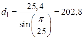 Так как передача лучше работает при небольшом провисании холостой ветви цепи рекомендуют уменьшать межосевое расстояние на 4,4мм. Окончательно назначаем a =1352 мм. Диаметры звездочек: