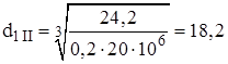 где T– крутящий момент на валу, [t] = 20 Мпа – допускаемые напряжения на кручение материала вала. Вал II (вал червяка).