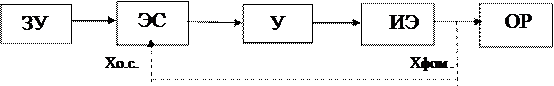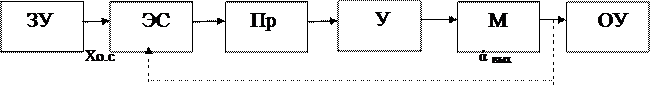 ∆Х=Хз-Хо.с Рис. 1-2 - ЭС – элемент сравнения, на вход которого поступает заданное значение и Хо.с, это функция выходной величины, в Э,С 2 величины сравниваются и отклонение ∆Х передается на усилитель, исполнительный элемент и объект регулирования. Через объект регулирования выходная величина поддерживается в нужных значениях, т.е. корректируется. 3)Система автоматического управления (САУ) Называется такая система, в которой организация целенаправленных действий осуществляется исполнительным элементом, на вход которого поступает управляющий сигнал.