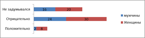 Приложение 2 Опрос Анкета респондента a. Мужской b. Женский 2. Что для вас означает понятие «ранний брак»? 3. Как Вы относитесь к такому явлению, как ранние (несовершеннолетние) браки в России и в мире в целом? a. Положительно b. Отрицательно c. не задумывался 4. Считаете ли Вы это проблемой современной России? a. Да b. Нет 5. Считаете ли Вы несовершеннолетние браки крепкими и долговечными? a. Да b. Нет c. не задумывался 6. Как вы думаете, в чем причина распада семей в ранних браках? a. из-за измены b. отсутствия денег c. вмешательства родителей d. другие причины (какие именно?) 7. Если молодой семье нужна поддержка, в чем она должна проявляться? a. не нужна b. обеспечение жил. площадью c. льготные кредиты d. материальная помощь государства e. поддержка родителей f. другое (допишите) 8. Какими вам видятся роли мужа и жены? a. Традиционными, когда жена сидит дома и ведет все хозяйство, в то время как муж работает, содержит всю семью, считается ее главой и принимает все важные решения b. Более прогрессивными, когда оба работают и имеют равные права при решении семейных и финансовых проблем. Результаты опроса 1.