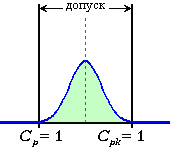 также зависит и от разброса процесса, который считается статистически устойчивым, имеющим нормальное распределение и ширину кривой распределения