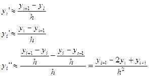 Эти формулы приближенно выражают значения производных во внутренних точках интервала [a,b]. Кроме того, краевые условия дополнительно дают еще два уравнения: