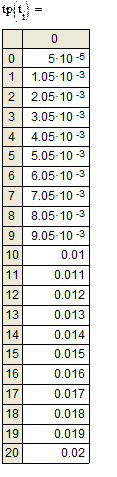 5.2 Реализация алгоритма на языке программирования высокого уровня Pascal Program teplota; uses wincrt; var R4,Q,f,f1,f2,hx,t,t1,t2,S,Int,a2,a1,a0,b2,b1,b0,c2,c1,c0,fn,fk:Real; n:Integer; begin R4:=1.88; t1:=0.001; t2:=0.007; n:=100; hx:=(t2-t1)/n; a2:=2170;a1:=17.98;a0:=0.0007; b2:=-880; b1:=36.38;b0:=-0.027; c2:=-3515;c1:=62.485;c0:=-0.0917; t:=t1; S:=0; fn:=sqr(a2*t1*t1+a1*t1+a0); fk:=sqr(c2*t2*t2+c1*t2+c0); repeat if t<=0.003 then f:=sqr(a2*t*t+a1*t+a0) else if t<=0.005 then f:=sqr(b2*t*t+b1*t+b0) else f:=sqr(c2*t*t+c1*t+c0); S:=S+f; t:=t+hx; until t>=t2; S:=S-(fn+fk); Int:=hx*(((fn+fk)/2)+S); Q:=R4*Int; writeln(' Int=',Int:2:8,' Q=',Q:2:7); end. Результат: Int =0.00007562 Q =0.0001422 5.3 Вычисление количества теплоты в пакете MathCAD