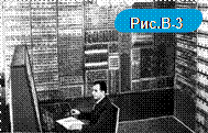 У Києві в одній з лабораторій Інституту електротехніки наприкінці 40-х років було створено першу в СРСР і континентальній Європі електронно-обчислювальну машину, прообраз сучасних комп’ютерів (рис. В-3). Потрібно було вирішувати досить багато завдань, які вимагали швидких і складних обчислень. У першу чергу це управління польотами балістичних і космічних ракет. Надалі лабораторію було перетворено на Інститут кібернетики, який створив ряд комп’ютерних систем. Найбільше досягнення Інституту — створення сучасних суперкомп’ютерів для
