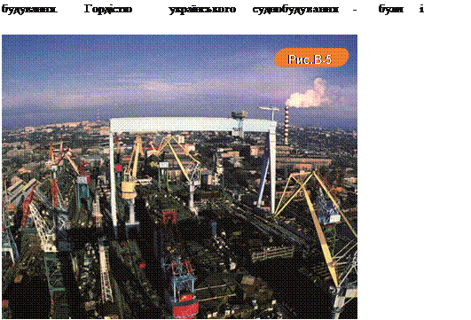 мічного корабля «Буран». АНТК ім. Антонова розробив і випустив понад 100 типів літаків цивільного і військового призначення. І сьогодні Авіаційний науково-технічний комплекс ім. Антонова належить до найвідоміших авіабудівних фірм світу. КОРАБЛЕБУДУВАННЯНаприкінці 18-го століття в Україні було побудовано великі кораблебудівні заводи, поблизу яких виникли міста Миколаїв і Херсон. Спочатку на цих заводах будували дерев’яні парусні військові кораблі та цивільні судна. З розвитком техніки заводи розширювалися: дерев’яні парусні судна замінилися на пароплави, які мали сталеві корпуси. У 19–20-му століттях кораблебудування України бурхливо розвивалося — наша країна перетворилася на одну з найбільших кораблебудівних держав Європи. Під кінець 20-го століття на 11 машинобудівних і приладобудівних заводах Миколаєва, Херсона, Керчі, Севастополя, Києва, Одеси було зосереджено близько 10 % усього обсягу світового корабле-