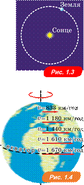 Якщо ж нас цікавить положення різних точок Землі в різні моменти під час її добового обертання, Землю не можна розглядати як матеріальну точку (рис. 1.4).