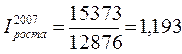 где ОПФ0 ,ОПФ1 – соответственно среднегодовая стоимость основных фондов в базисном (2007 г.) и отчетном (2008 г.) годах. Iвп – индекс объема валового производства продукции, рассчитывается по формуле: