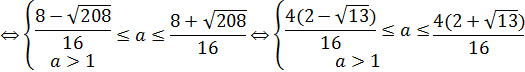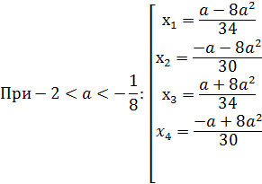 Итоговый ответ удобно получить графически. Для этого изобразим на оси параметра промежутки значений а, для которых являются решениями значения