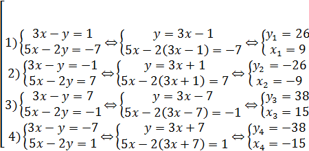 Так как мы ищем только пары целых чисел ( x , y ) , то числа