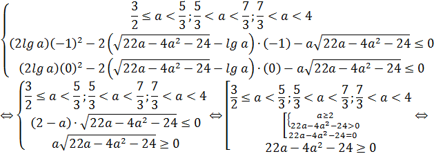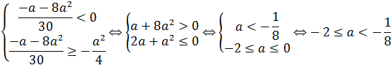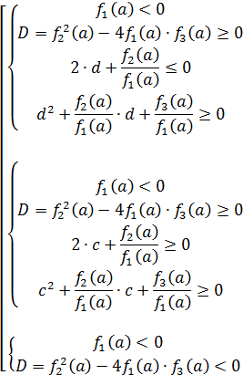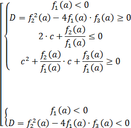 Иначе говоря, числа -1 и 0 должны находиться между корнями этого квадратного трехчлена. Согласно пункту III теоремы 7, должна быть справедлива система: