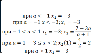 Рис. 4. Выпишем ответ задачи (он непосредственно следует из рис. 4) Ответ. 1) а < 3 – решений нет; 2) а