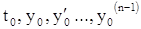 Числа называют начальными значениями для решения , а соотношение (4) — начальным условием для этого решения. Говорят также, что решение удовлетворяет начальному условию (4) или же что оно имеет начальные значения . Утверждение, что решение удовлетворяет начальному условию (4) (или имеет начальные значения ), предполагает, что интервал определения решения содержит точку .