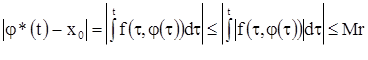Говоря, что через каждую точку множества Г проходит «только одна» интегральная кривая, мы допускаем некоторую неточность. В самом деле, решением уравнения (3) называется функция , заданная на вполне определенном интервале . Наряду с этой функцией может существовать функция , также удовлетворяющая уравнению (3) и имеющая те же начальные значения , но заданная на другом интервале . Вторая часть теоремы 1 утверждает лишь, что функции и совпадают там, где они обе определены, но вовсе на утверждает, что интервалы их определения и одинаковы.