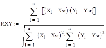 где Xi, Yi- значения первой и второй выборок данных; Xsr, Ysr - средние значения первой и второй выборок.