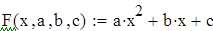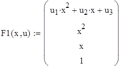 по с : 1 4) Введем вектор, элементами которого являются функция приближения и её производные, переобозначив коэффициенты регрессии u1=a, u2=b, u3=c: вектор F1 должен быть вектором с символьными элементами, причем они должны содержать аналитические выражения для исходной функции и ее производных по всем параметрам.