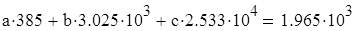 3) Составим систему нормальных уравнений: 4) Решая эту систему относительно коэффициентов a, bи с, найдем их значение:
